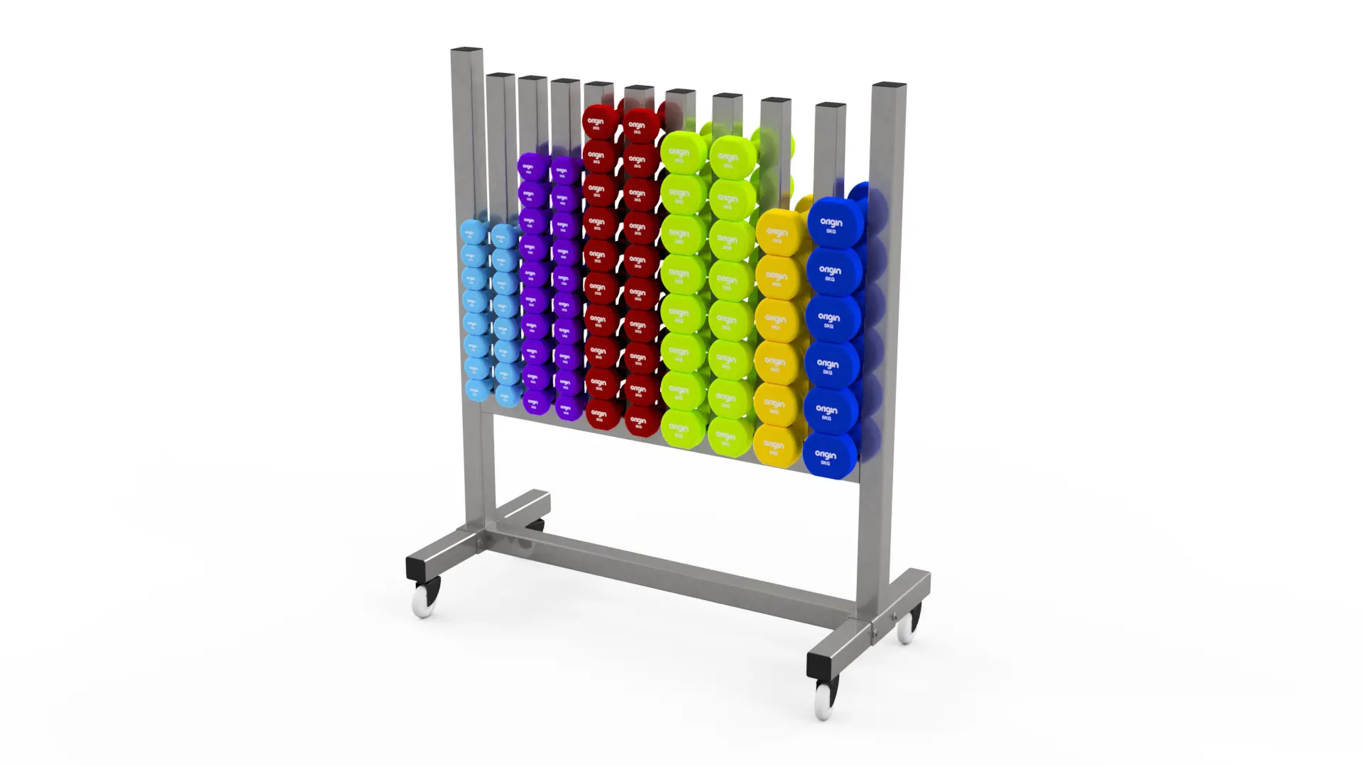 The Origin Studio Dumbbell Rack offers users a great storage solution for the Origin Studio Dumbbells. The rack will hold up to 42 pairs of the Origin Studio Dumbbells (specific dumbbell configuration required).