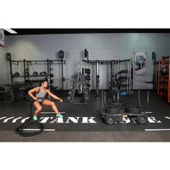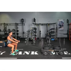 The Tow Kit expands the training functionality of the TANK. Tow, standing row, lateral sidestep, backward run are just a few things that the dual handled V-Strap, harness and tow strap allow.